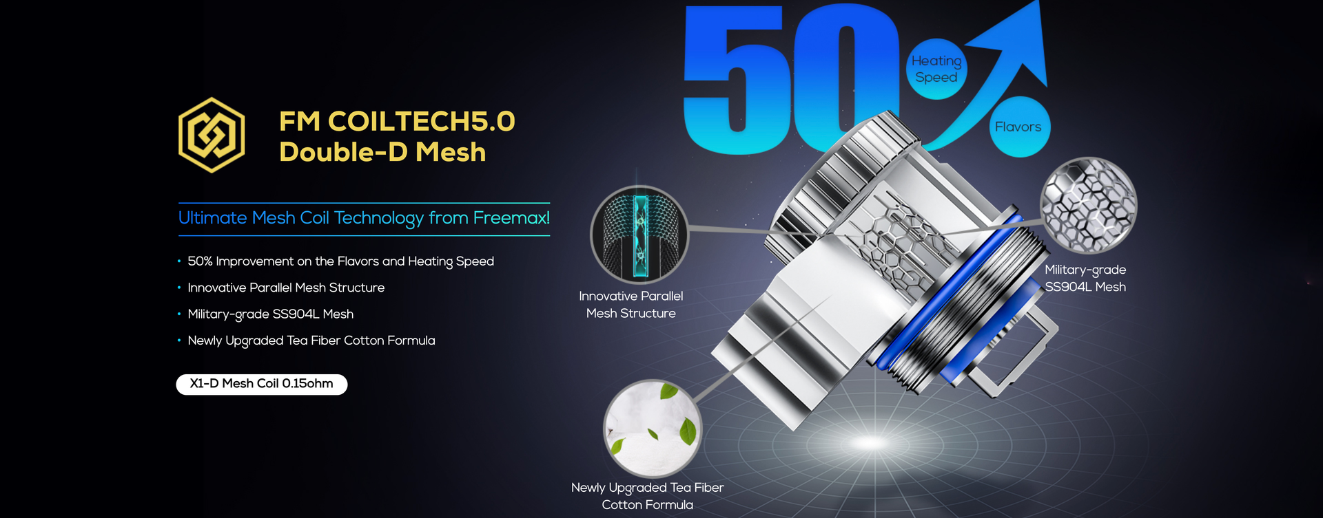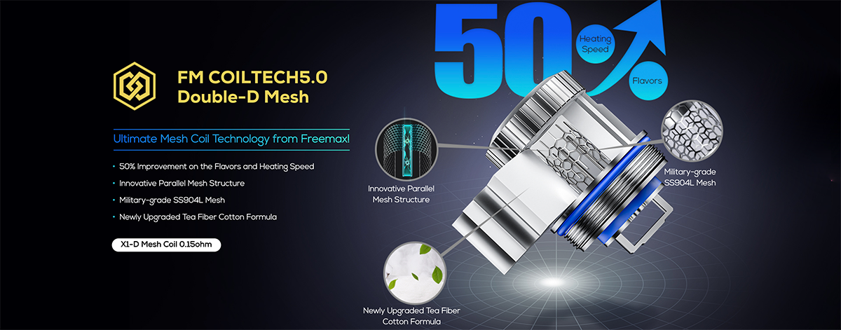 β 1 x FreeMax X1-D Mesh 0.15Ξ© Coil (pre-installed)