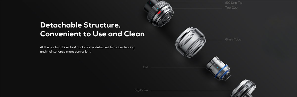 π¨ FreeMax presents the FireLuke 4 Tank, showcasing a 5mL glass tube, a swappable 810 drip tip, and a 510 base. Its top-fill design adheres to the ISO 8317 Child Resistance Certification, ensuring a seamless and easy process when it comes to filling and cleaning the tank.